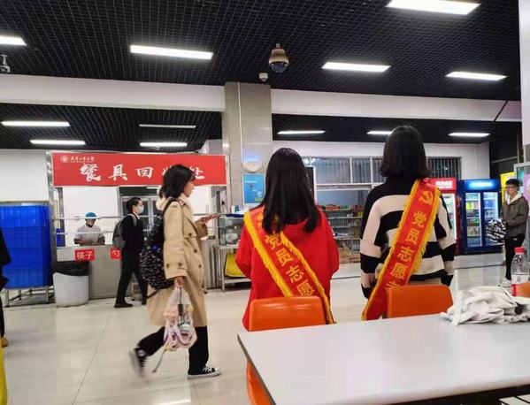 为保证同学们的用餐秩序,公司青年志愿者协会组织招募党员志愿者,积极参与为期两周的西苑和东苑员工餐厅志愿服务活动,旨在为同学们提供一个温馨的用餐环境。