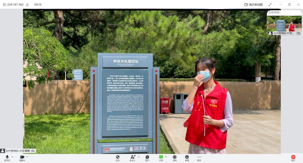 在杨家岭革命旧址,实践团参观中共七大会址,感受通过坚持真理、修正错误达到的“同心同德”延安整风精神,以及在毛泽东思想旗帜引领下胜利召开的七大初心。参观的同时,团队成员进行了线上直播讲解,让更多人感受伟人们的艰苦奋斗精神。