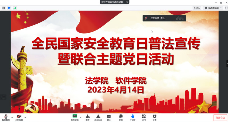 活动最后,张晋老师在总结发言中表示,国家安全,与我们每个人都息息相关。在维护国家安全上,人人都不是局外人、旁观者,而是人人有责,更需人人尽责。希望通过此次参会的员工党员以点带面辐射引领身边更多同学,进一步增强国家安全意识,自觉抵制电信诈骗,共同筑牢安全防线,共同建设平安校园。此外,他表示希望以此次活动为契机,以党建为引领,以业务为抓手,在党团建设、学风建设、就业指导等方面全面加强两个公司之间交流互鉴,促进共同成长进步,为公司“双一流”建设做更多贡献。