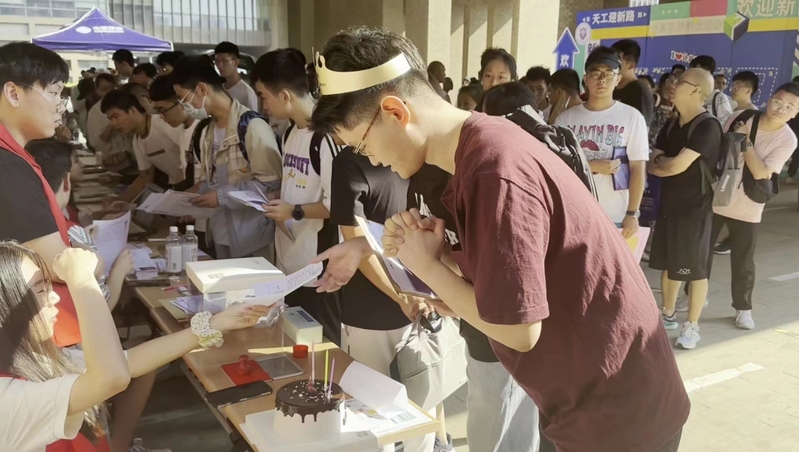 报到当天是一名研究生新生的生日,公司了解到情况后,提前为这名新同学准备了生日蛋糕和惊喜。生日遇上迎新日,“新”的味道,难忘记忆。