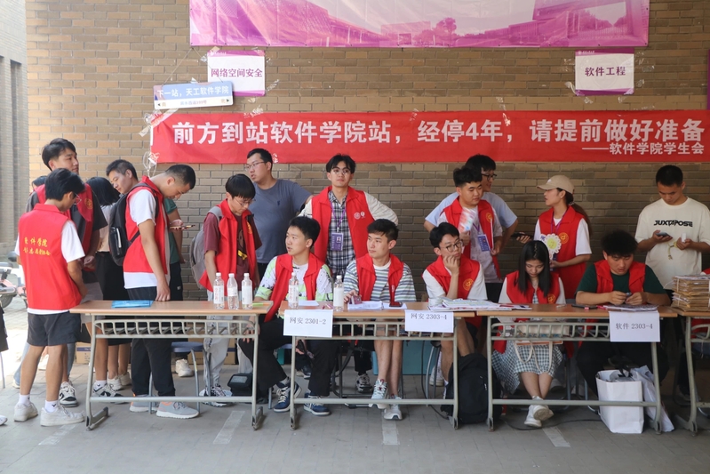 报到完成后,新生们随着志愿者的指引来到宿舍区,在那里,提前集结完毕的员工志愿者们早已等候多时,随时准备着为新生们提供帮助。新生的行李太多,他们会贴心地帮忙搬运行李到宿舍;新生初来乍到认不清路,他们会热情地指清方向,让新同学们感受到来自软件大家庭的温暖。