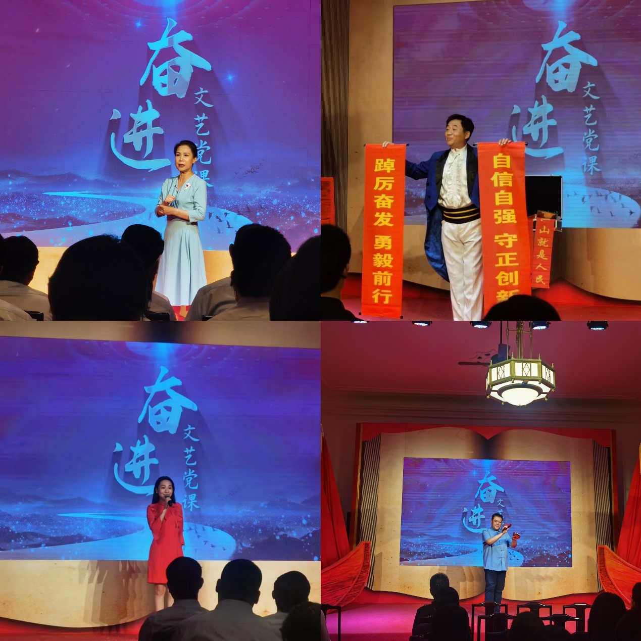 活动开始,党员们共同观看了《奋进》文艺党课。内容包括快板、相声、魔术、评书、原创歌唱等环节。以群众喜闻乐见的形式,将党的二十大精神、党史等内容深入融合到曲艺表演之中,给现场观众展现了一堂感人至深的沉浸式文艺党课。
