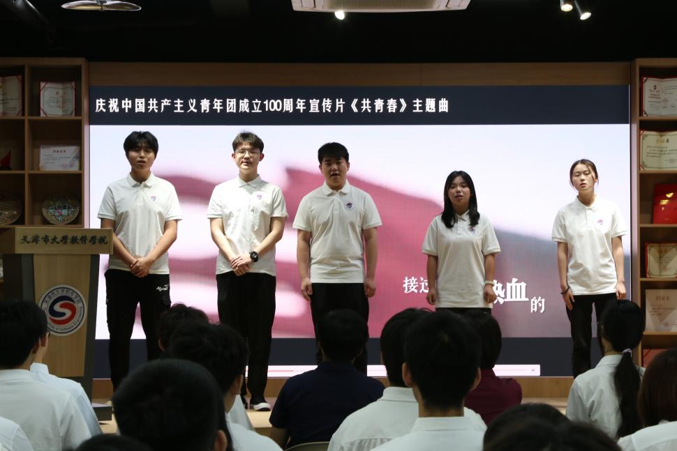 会议中场,院青马二期班学员代表、院团委员工会员工干部代表为参会师生带来了歌曲表演《有我》,“我的样子,就是中国的模样。当炬火,去化作那道光!”嘹亮的歌声将现场气氛推向高潮。