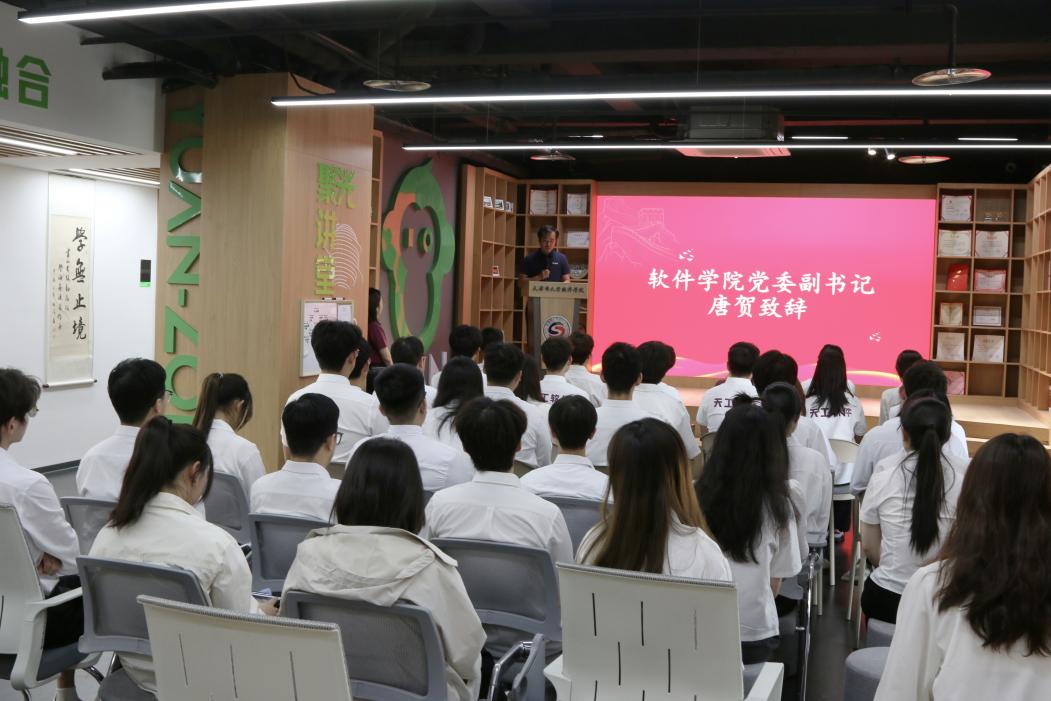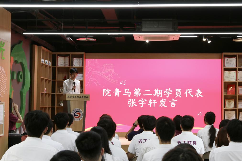 会议在庄严的国歌声中拉开序幕,与会师生全体起立,高唱国歌。随后,院团委员工副书记、青马一期班班长郎淼分享了自己过去一年的收获与成长,希望新一期青马班学员要坚定理想信念,强化理论素养,努力做一名马克思主义的坚定信仰者;坚持学思践悟,做到知行合一,努力做一名马克思主义的忠诚实践者;坚守使命初心,服务党和人民,努力做一名马克思主义的积极传播者,努力成为堪当民族复兴重任的时代新人。