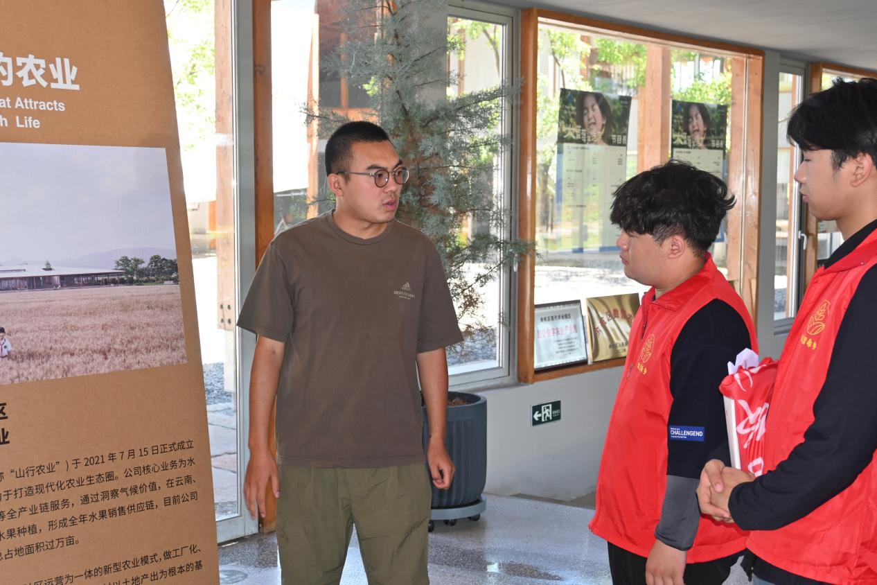 图为彭公数字农场负责人向队员介绍农场发展