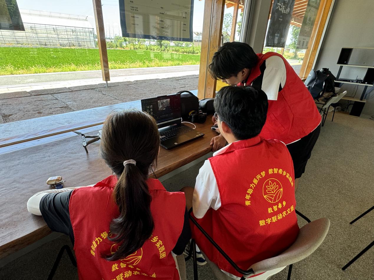 图为实践队在农场进行后期视频剪辑