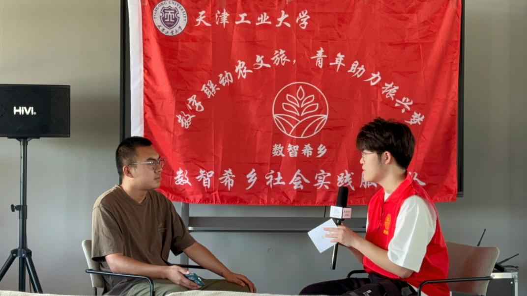 图为实践队采访彭公数字农场负责人伏宝君
