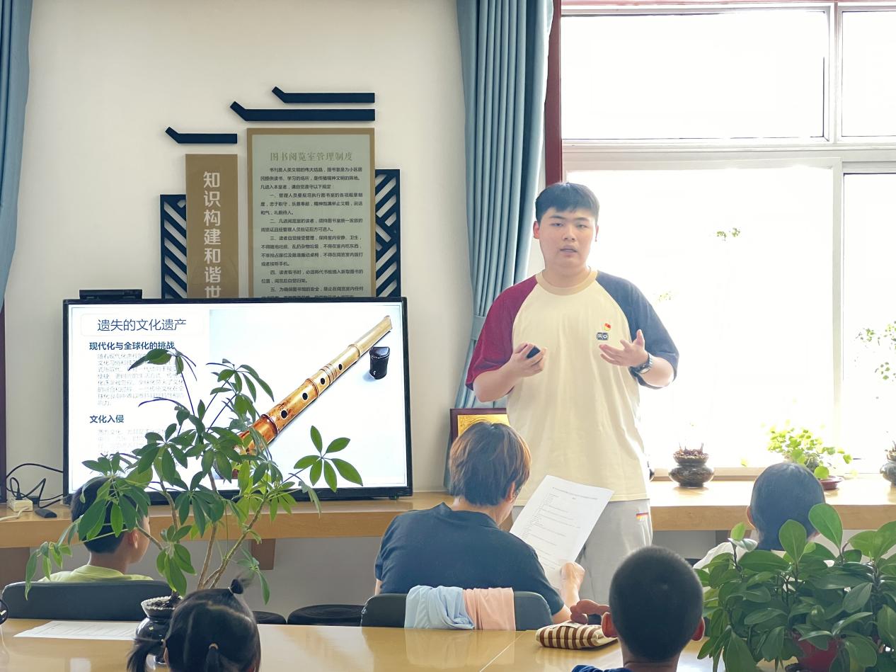 图为实践团成员在付村新时代文明实践站为青少年宣讲大运河传统文化与文化自信