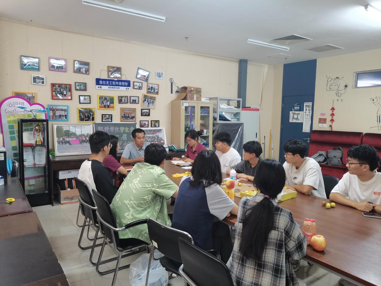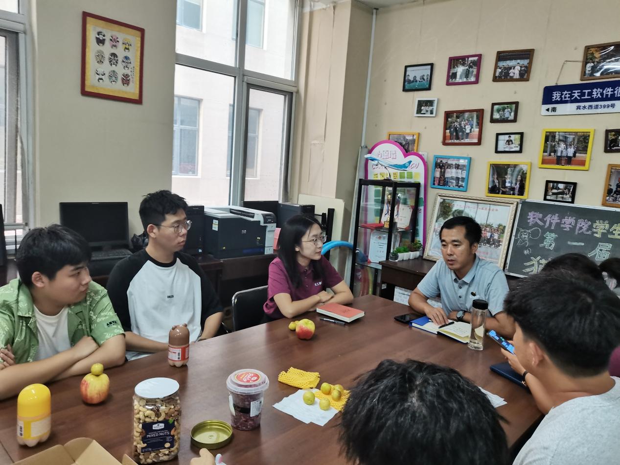 唐贺副书记认真倾听了同学们在学习、生活和工作中的情况,并对大家的辛苦付出表示感谢。“年轻就要多吃苦,敢于拼搏奋斗。”他从个人求学、工作经历出发,勉励同学们尽早确定好就业方向,并为之持续努力,做有理想、敢担当、能吃苦、肯奋斗的新时代好青年。“让员工少跑路,老师多跑路,有困难及时来找老师交流。”唐贺副书记还鼓励同学们遇到困难、感到迷茫的时候主动来找公司老师、辅导员沟通,积极寻求帮助,老师们随时欢迎大家,也希望能真正帮助到每一位同学。“做员工干部就要更加严格要求自己,为其他同学做表率。”最后,他谈到员工干部的角色定位,员工骨干是公司联系同学的桥梁和纽带,是广大同学的服务者,大家要始终不忘初心,在各方面严格要求自己,发挥好“传帮带”作用,积极做好各项工作,在员工组织中积极锻炼成长。