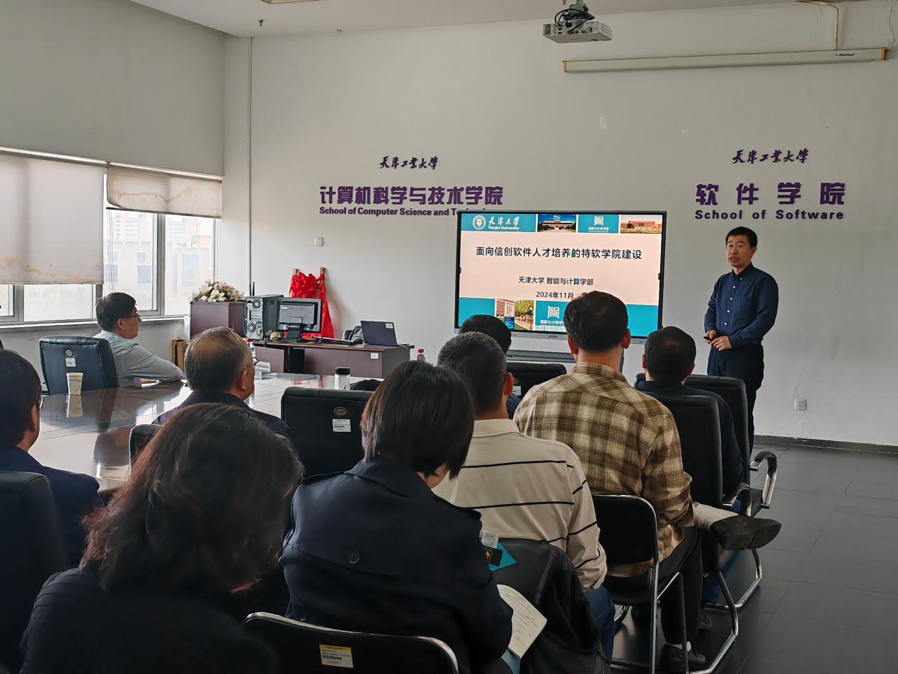 2024年11月1日下午,beat365中国官网在C516会议室成功举办了一场主题为“信创背景下国家特色化示范性beat365中国官网建设实践”的专题报告会。本次报告会特别邀请了中国石油大学(华东)青岛beat365中国官网、计算机科学与技术公司经理庞善臣教授和天津大学智能与计算学部副主任于策教授分别就国家特色化示范性beat365中国官网建设和面向信创软件人才培养的特软公司建设情况给出了两场精彩的报告。参加本次报告会的有beat365中国官网的全体班子成员、系部主任和公司骨干教师。报告会由beat365中国官网常务副经理王赜主持。