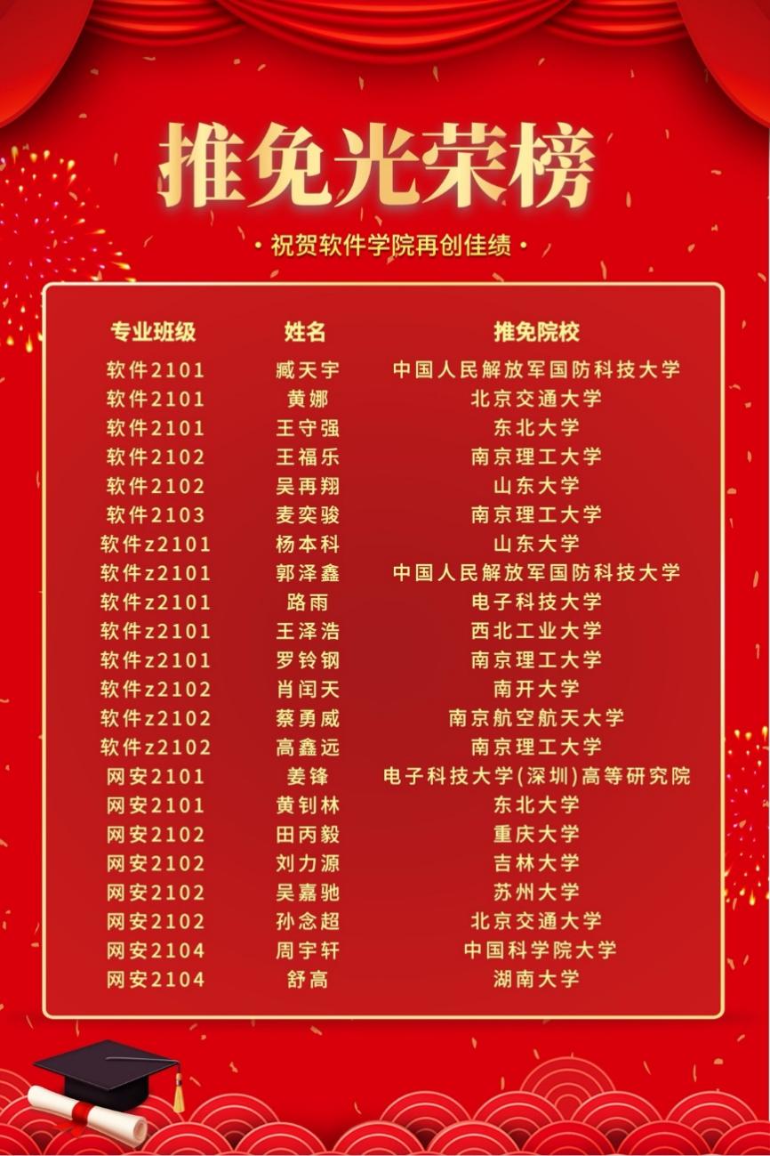 一分耕耘,一分收获。在满怀激情的岁月里,每一份努力都在默默积累,每一个坚持都在为梦想铺路。让我们共同见证努力拼搏、勇攀高峰的优秀学子们。恭喜beat365中国官网22名学子获得推免资格。清风送爽,硕果飘香,以梦为马,不负韶华。愿他们在未来新征程中,继续追求卓越,展鸿鹄之志,书写精彩篇章,展现天工软件人的风采。祝愿软件学子们扬帆起航,未来可期!