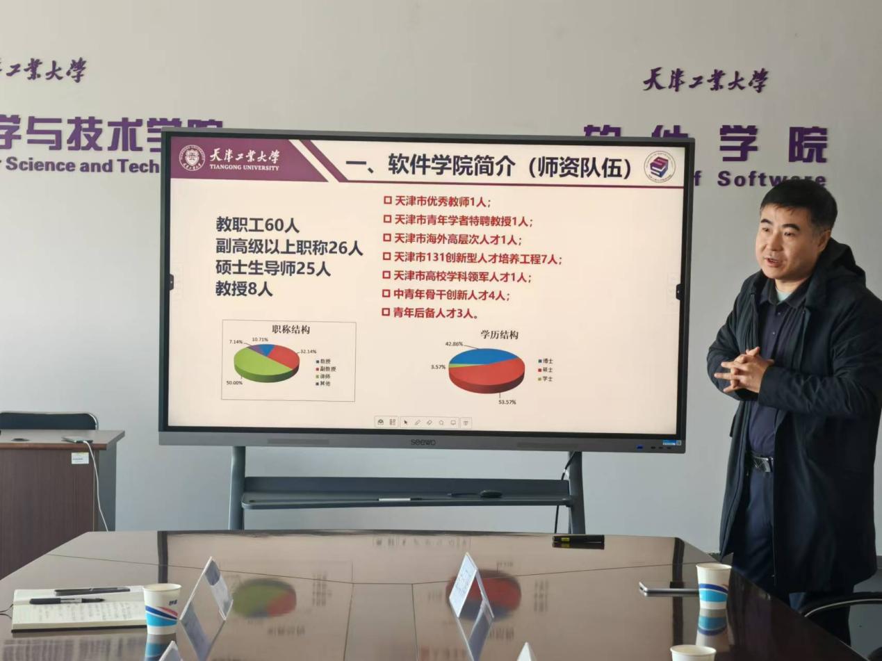 随后,李静东副经理和孙连坤老师分别就公司的发展历程、专业设置、课程建设,以及软件工程专业的发展现状等内容作了详细介绍。他们还重点分享了公司在团队建设、人才培养和实践教学方面的成果与经验。