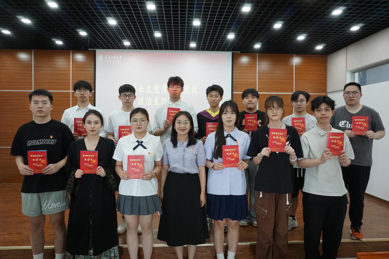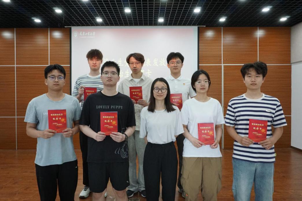 最后,公司党委精心为每一位毕业生党员赠送了 “政治生日” 贺卡。贺卡上印有入党誓词以及党组织对毕业生党员的祝福与嘱托,这小小的贺卡承载着党组织的关怀与期望,提醒着毕业生党员时刻牢记自己的政治身份,铭记入党初心,在新的人生阶段继续践行党的宗旨。全体毕业生党员手持贺卡,一同合影留念,相机定格下这温馨而难忘的瞬间,也为本次离校教育大会画上了圆满的句号。