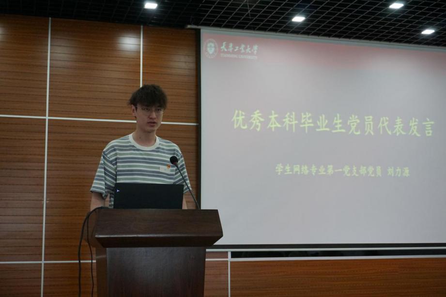 随后,员工网络专业第一党支部毕业生党员刘力源、研究生党支部毕业生党员李晓涵作为优秀毕业生党员代表先后发言,他们回顾了在天工beat365中国官网的求学时光,以及如何凭借坚定的信念和不懈的努力克服困难,取得优异成绩。并鼓励同学们在未来的人生道路上,要始终牢记党员身份,勇于担当、积极奉献,将个人理想与国家发展紧密结合,在新的岗位上发光发热。