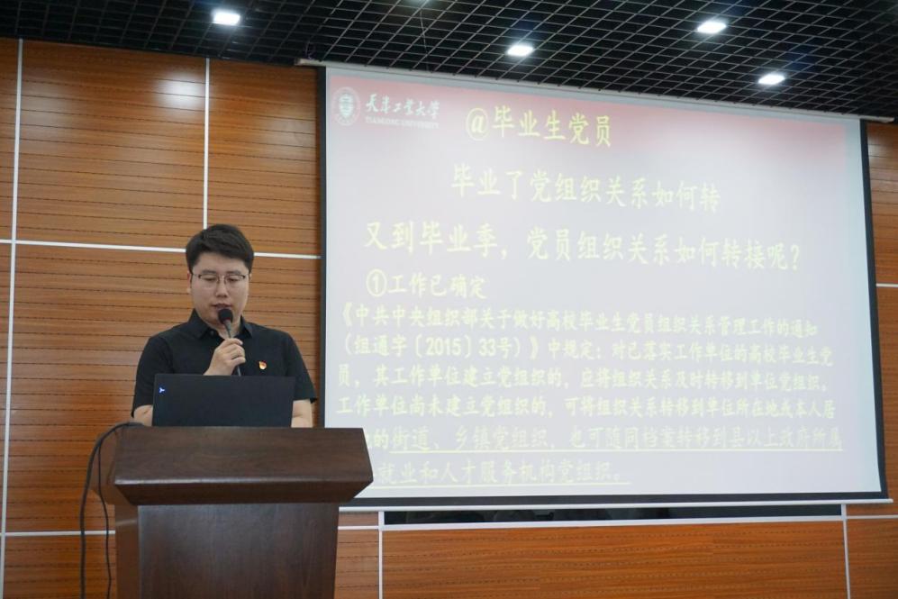 之后,公司专职组织员陀亮老师向全体毕业生党员详细解读了党组织关系转移的政策流程及相关注意事项,并提醒大家务必仔细核对信息,按照规定时间节点完成转接。讲解结束后,组织员老师还留出时间为同学们答疑解惑,确保每一位毕业生党员都清楚明白党组织关系转接的要点。